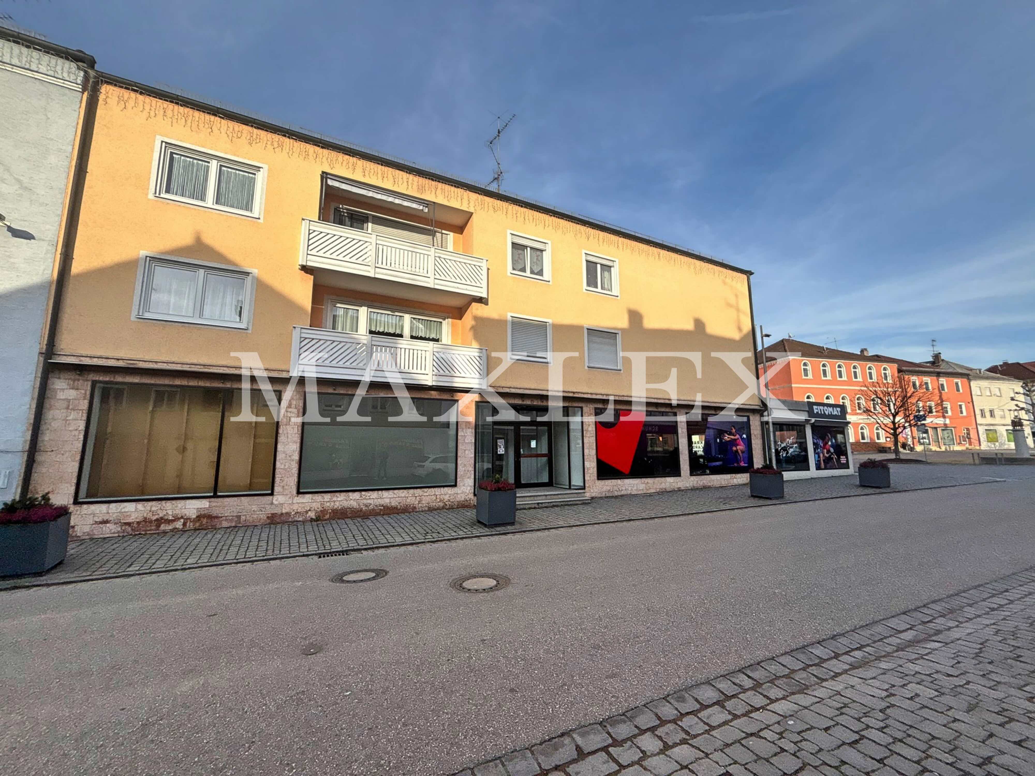 Diese vielseitig nutzbare Gewerbeeinheit befindet sich ebenerdig in zentraler Lage am Marktplatz von Aidenbach und bietet dank der zwei großen Schaufensterfronten eine hervorragende Sichtbarkeit sowie optimale Werbemöglichkeiten.